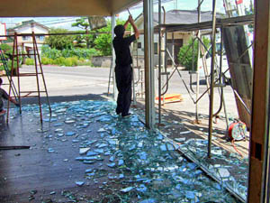 今の仮事務所は初め‘げ〜ココで?’と思って